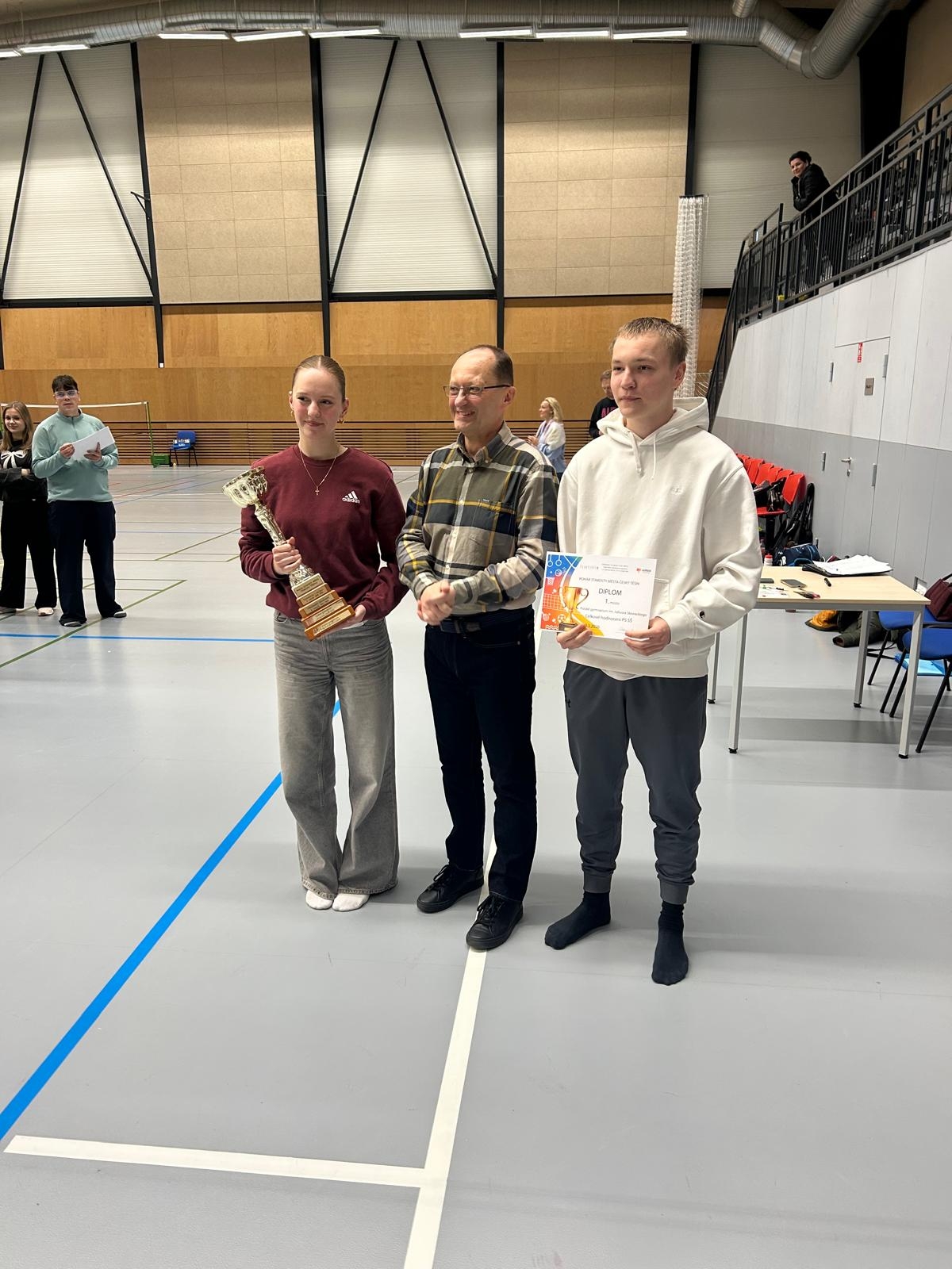 Jak co roku nasza szkoła bierze udział w zawodach o Puchar Burmistrza Miasta Czeski Cieszyn. Dyscypliny, w których mogli się zmierzyć zarówno chłopcy, jak i dziewczęta, to: lekkoatletyka, siatkówka, koszykówka, unihokej (floorball), futsal, wielobój siłowy oraz badminton. Bardzo dobra postawa naszych zawodników w ogólnej klasyfikacji zaowocowała zdobyciem 1. miejsca. Dzięki temu puchar przechodni Burmistrza Miasta Czeski Cieszyn przez najbliższy rok będzie naszą własnością.